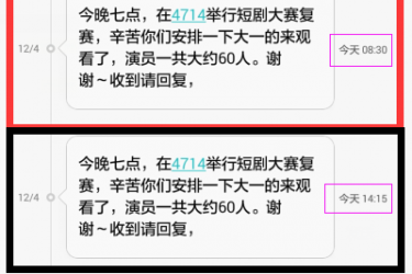 早上八点多貌似她(系网宣部长,关系还算蛮不错的小伙伴)给我发了短信。PS:我是中午才发现她给我发过短信的。
